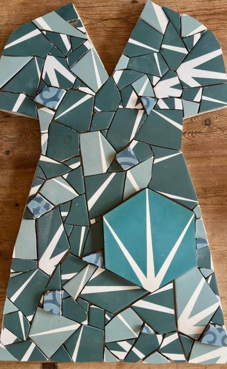 This was an unusual and challenging commission - the tiles were very thick! . My client was inspired by the Ukranian artist, Zhanna Kadyrova, who creates sculptural representations of clothing from found ceramic tiles..