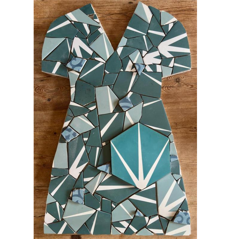 This was an unusual and challenging commission - the tiles were very thick! . My client was inspired by the Ukranian artist, Zhanna Kadyrova, who creates sculptural representations of clothing from found ceramic tiles which are often displayed in situ. I was given special tiles to fit haphazardly on the shape of a nurse's uniform.